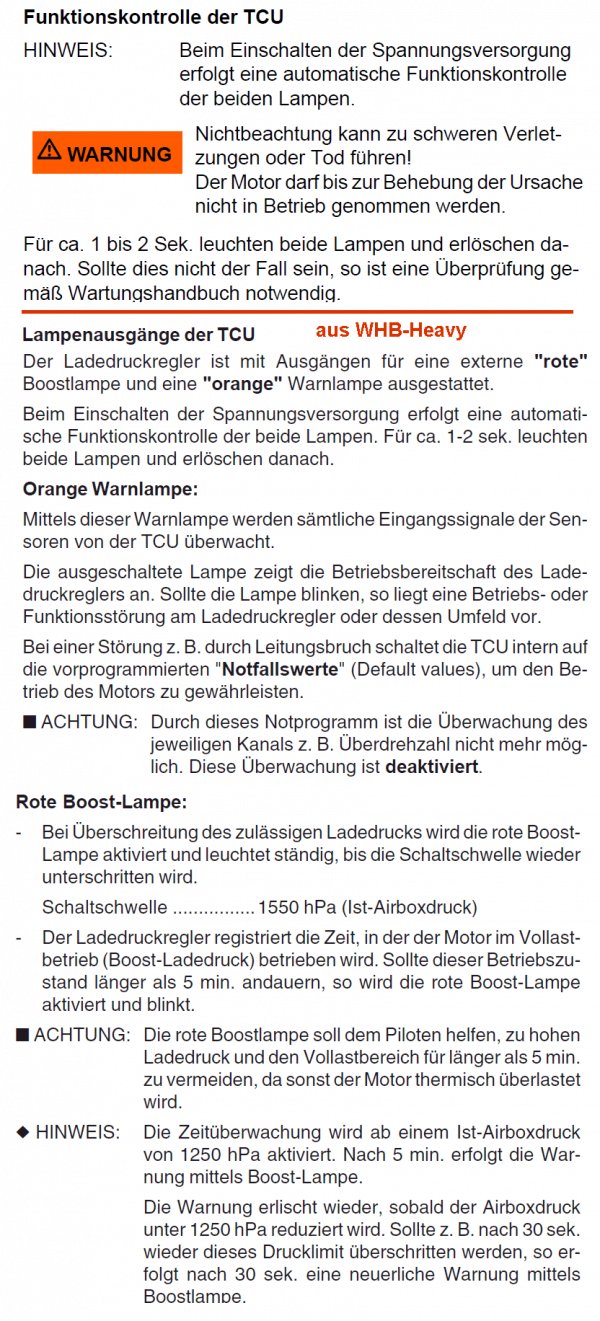 was die Handbücher zu den TCU-Kontrollampen sagen :